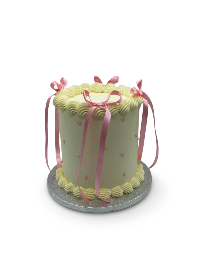 Vier je speciale moment in stijl met deze prachtige vintage taart! Deze luxe taart is afgesmeerd met botercrème en versierd met subtiele strikken.
